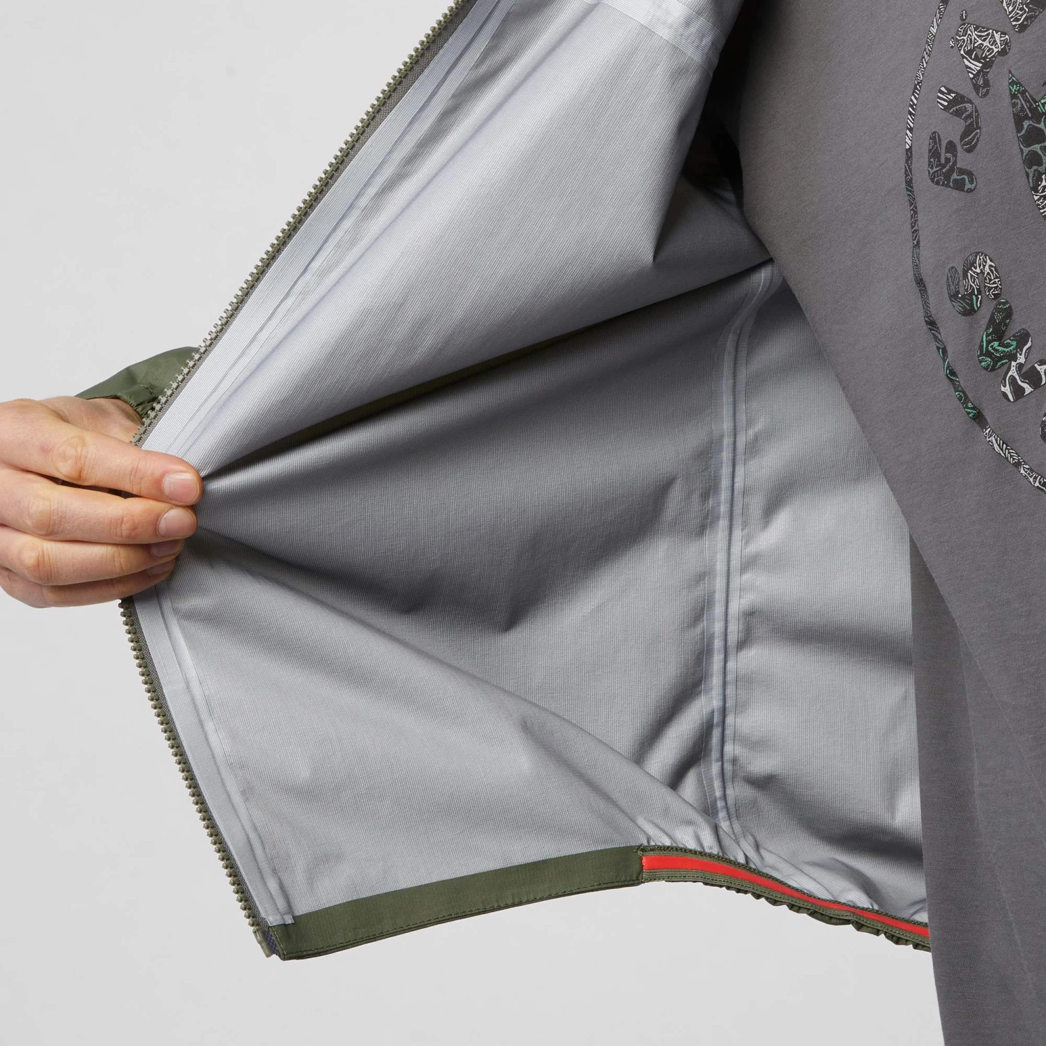Neben diesen beiden Vorteilen ist die Jacke natürlich auch wasserdicht. Und regnet es gerade mal nicht? Die leichte Jacke kannst du bei Nichtgebrauch in die eigene RV-Brusttasche krempeln und auf diese Weise platzsparend verstauen.