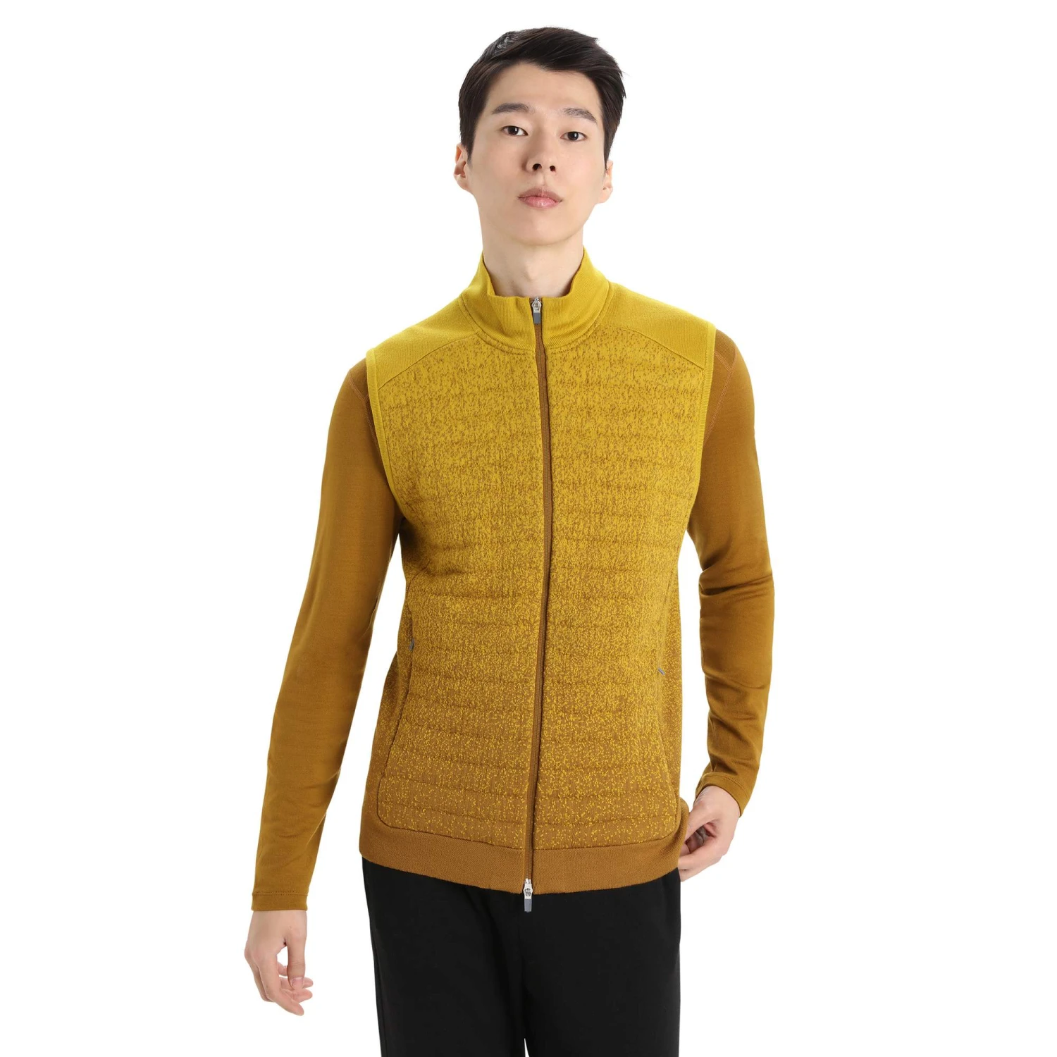 Versehen mit einem hohen, doppelt gelegten Stehkragen bleibt auch dein Hals angenehm warm. Während du über den Front-RV für etwas Belüftung sorgen kannst, falls du ein wenig Abkühlung brauchst. Durch die schmalere Passform liegt die Weste eng am Körper und kann auch super als Midlayer eingesetzt werden. Für einen reibungslosen Sitz kommt sie ohne Seitennähte aus. Die zwei RV-Einschubtaschen bieten Platz für Smartphone, Portemonnaie und kleineres Equipment.